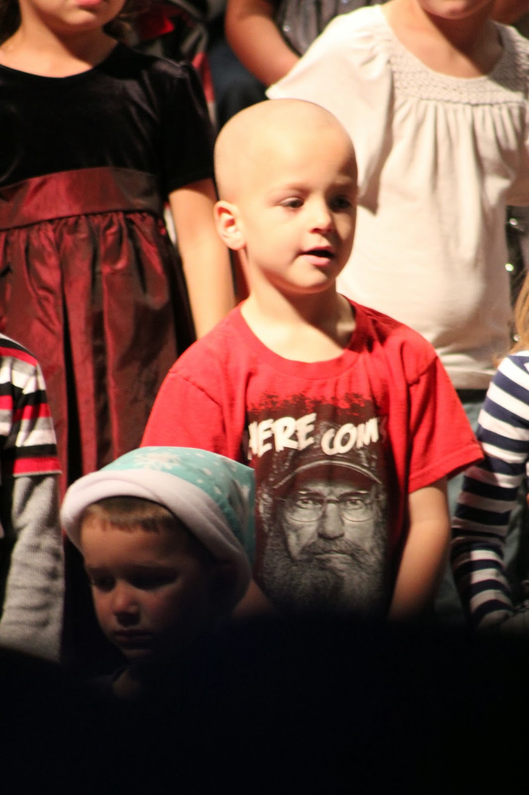 The Kindergarten classes put on a program for the parents today. They sang a lot of Christmas songs. Ethan did a good job with most of them.